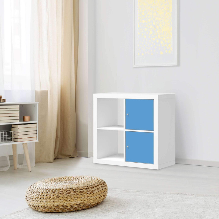 Unsere Möbelfolie Blau Light für das Kallax Regal 2 Türen (hoch) ist der Blickfang in jedem Wohnzimmer. Die Dekofolien sind hochwertige, selbsthaftende Vinylfolien (seidenmatt) und können dank Bubble-free Technologie kinderleicht verklebt werden.