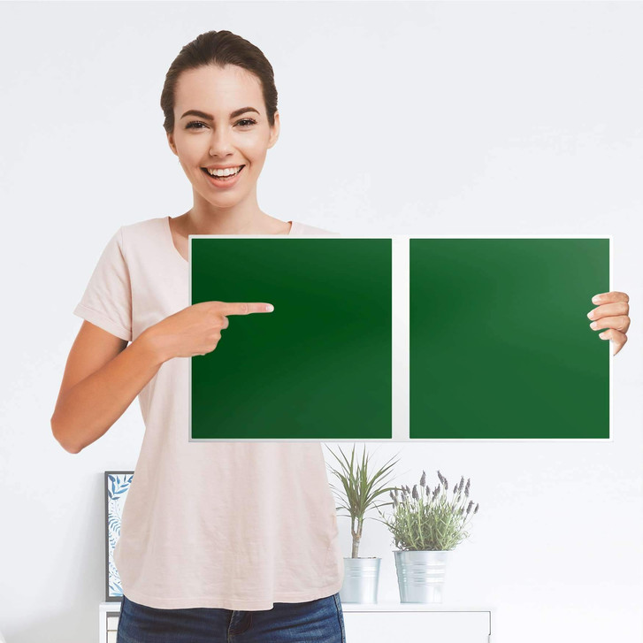 Unsere Möbelfolie Grün Dark für das Kallax Regal 2 Türen (quer) ist der Blickfang in jedem Wohnzimmer. Die Dekofolien sind hochwertige, selbsthaftende Vinylfolien (seidenmatt) und können dank Bubble-free Technologie kinderleicht verklebt werden.