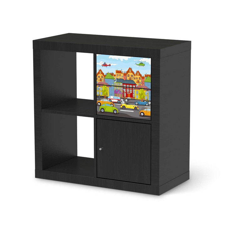 Unsere Möbelfolie City Life für das Kallax Regal Schubladen ist der Blickfang in jedem Kinderzimmer. Die Dekofolien sind hochwertige, selbsthaftende Vinylfolien (seidenmatt) und können dank Bubble-free Technologie kinderleicht verklebt werden.