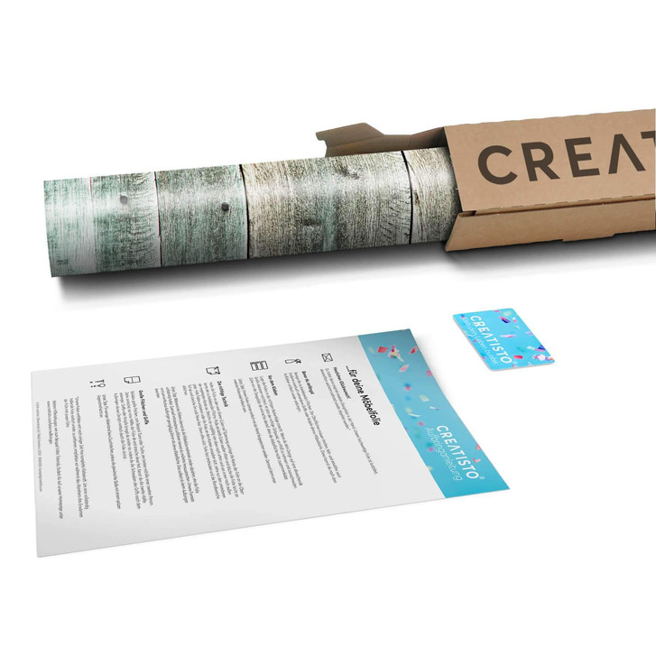 Das Trägerpapier von der Folie ca. 10-20 cm abziehen und am oberen Bereich des Objektes positionieren. Zieh jetzt das Trägerpapier Stück für Stück von der Motivfolie nach unten hin ab und streiche das Motiv vorsichtig an der Möbeloberfläche fest.