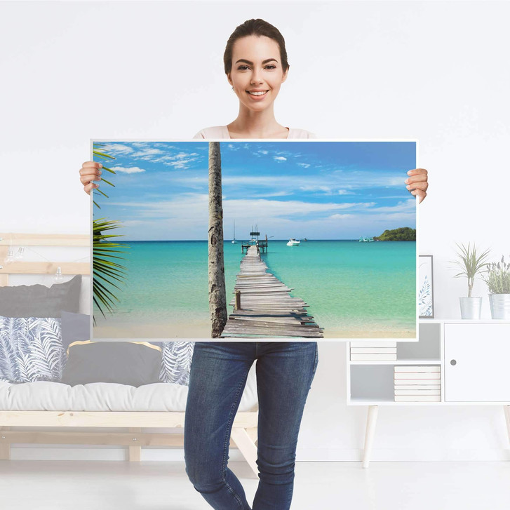 Das Trägerpapier von der Folie ca. 10-20 cm abziehen und am oberen Bereich des Objektes positionieren. Zieh jetzt das Trägerpapier Stück für Stück von der Motivfolie nach unten hin ab und streiche das Motiv vorsichtig an der Möbeloberfläche fest.