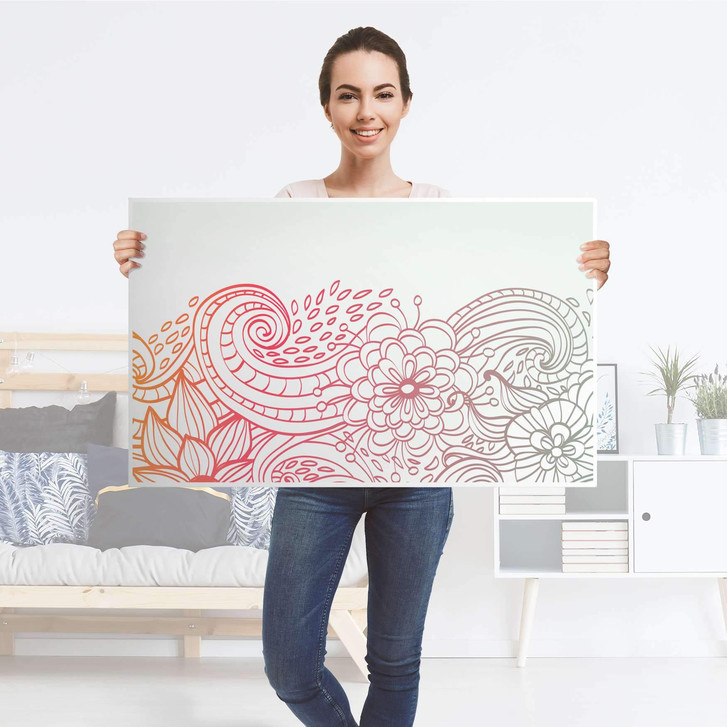 Unsere Möbelfolie Floral Doodle für den Lack Tisch 90x55cm ist der Blickfang in jedem Wohnzimmer. Die Dekofolien sind hochwertige, selbsthaftende Vinylfolien (seidenmatt) und können dank Bubble-free Technologie kinderleicht verklebt werden.