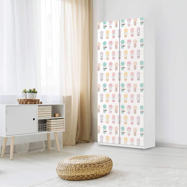 Unsere Möbelfolie IKEA Flying Animals ist passend zugeschnitten für den Pax Schrank 236cm Höhe - 2 Türen und ist der Blickfang in jedem Kinderzimmer. Die Dekofolien sind hochwertige, selbsthaftende Vinylfolien (seidenmatt) und können dank Bubble-free Technologie kinderleicht verklebt werden.