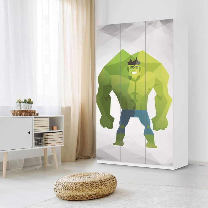 Unsere Selbstklebende Folie Mr. Green ist passend zugeschnitten für den Pax Schrank 236cm Höhe - 3 Türen und ist der Blickfang in jedem Kinderzimmer. Die Dekofolien sind hochwertige, selbsthaftende Vinylfolien (seidenmatt) und können dank Bubble-free Technologie kinderleicht verklebt werden.