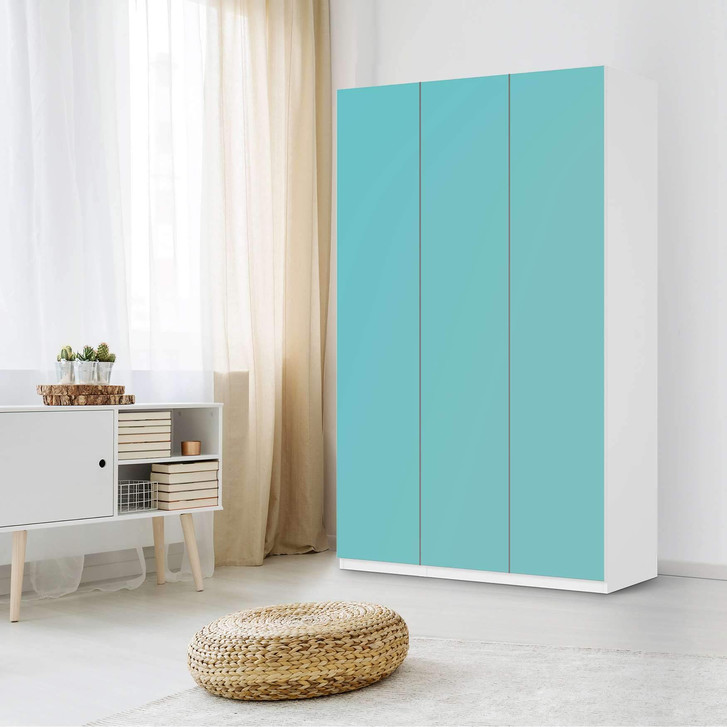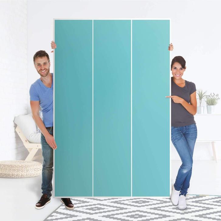 Unsere Selbstklebende Folie Türkisgrün Light ist passend zugeschnitten für den Pax Schrank 236cm Höhe - 3 Türen und ist der Blickfang in jedem Schlafzimmer. Die Dekofolien sind hochwertige, selbsthaftende Vinylfolien (seidenmatt) und können dank Bubble-free Technologie kinderleicht verklebt werden.