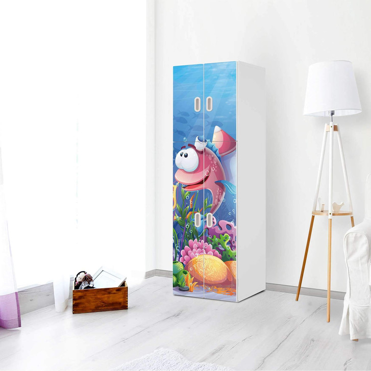 Unsere Selbstklebende Folie Bubbles für die Stuva / Fritids Kombination mit 2 grossen und 2 kleinen Türen ist der Blickfang im Kinderzimmer. Unsere Dekofolien sind hochwertige, selbsthaftende Vinylfolien (seidenmatt) und können dank Bubble-free Technologie kinderleicht verklebt werden.