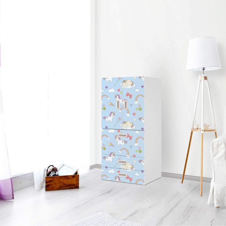 Möbelfolie IKEA Stuva / Fritids - 3 Schubladen und 2 kleinen Türen - Rainbow Unicorn