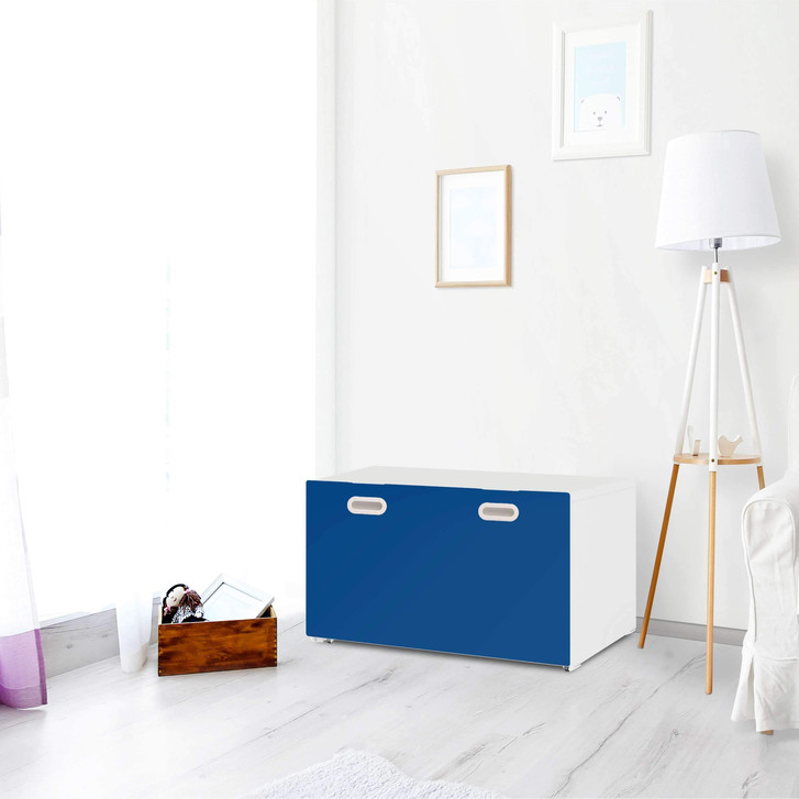 Unsere Möbelfolie Blau Dark für die Stuva / Fritids Bank mit Kasten ist der Blickfang im Kinderzimmer. Unsere Dekofolien sind hochwertige, selbsthaftende Vinylfolien (seidenmatt) und können dank Bubble-free Technologie kinderleicht verklebt werden.