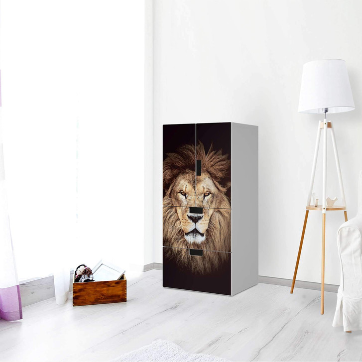 Unsere Möbelfolie Wild Eyes für die Stuva Aufbewahrung- 2 Schubladen und 2 kleine Türen ist der Blickfang im Wohnzimmer. Unsere Dekofolien sind hochwertige, selbsthaftende Vinylfolien (seidenmatt) und können dank Bubble-free Technologie kinderleicht verklebt werden.