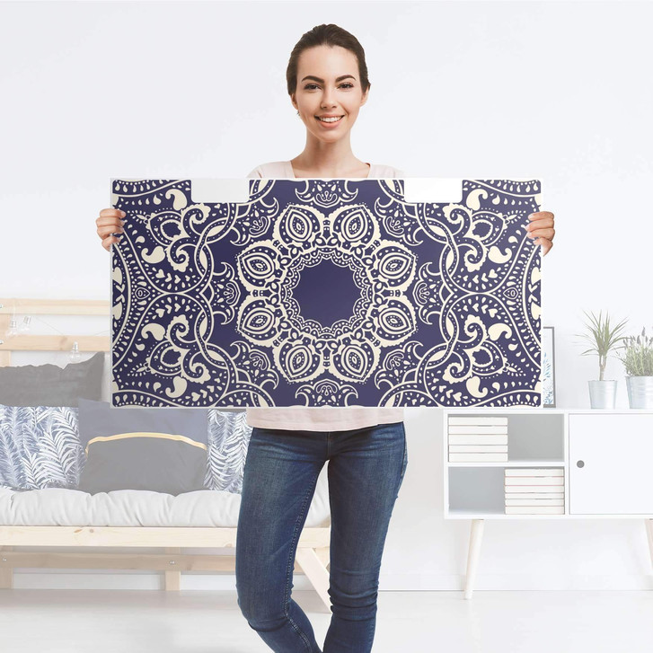 Unsere Möbelfolie Blue Mandala für die Stuva Banktruhe ist der Blickfang im Wohnzimmer. Unsere Dekofolien sind hochwertige, selbsthaftende Vinylfolien (seidenmatt) und können dank Bubble-free Technologie kinderleicht verklebt werden.