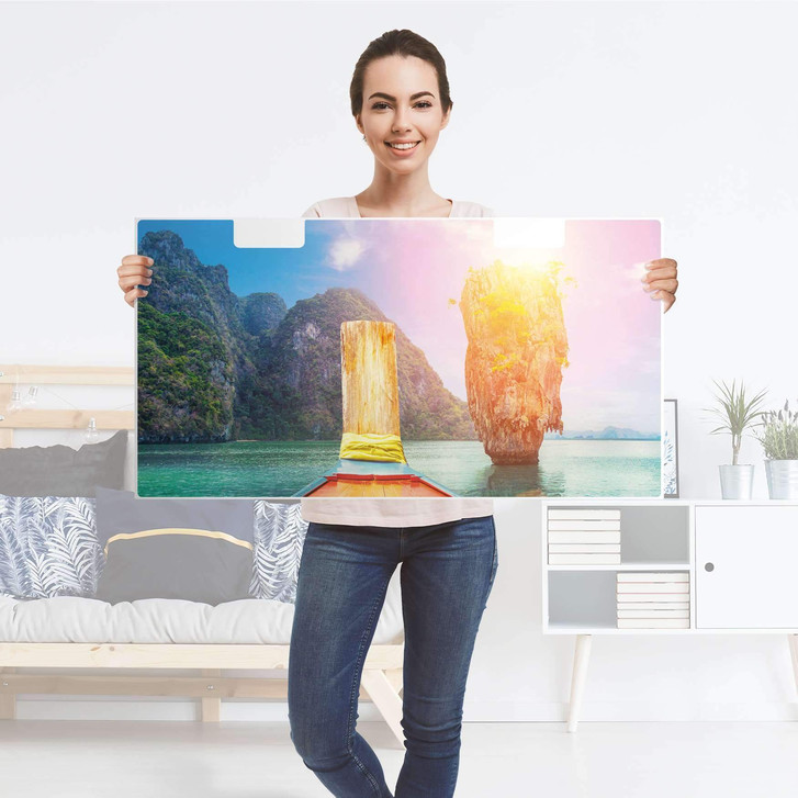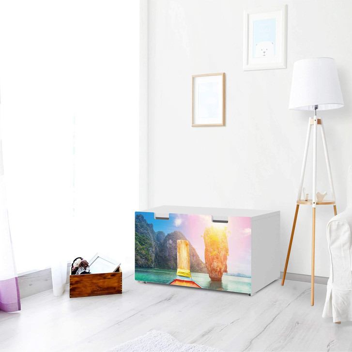 Unsere Möbelfolie Blue Water Lagoon für die Stuva Banktruhe ist der Blickfang im Wohnzimmer. Unsere Dekofolien sind hochwertige, selbsthaftende Vinylfolien (seidenmatt) und können dank Bubble-free Technologie kinderleicht verklebt werden.