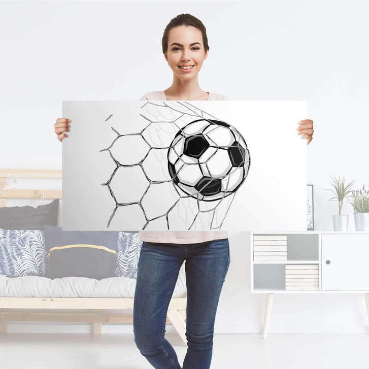 Das Trägerpapier von der Folie ca. 10-20 cm abziehen und am oberen Bereich des Objektes positionieren. Zieh jetzt das Trägerpapier Stück für Stück von der Motivfolie nach unten hin ab und streiche das Motiv vorsichtig an der Möbeloberfläche fest.