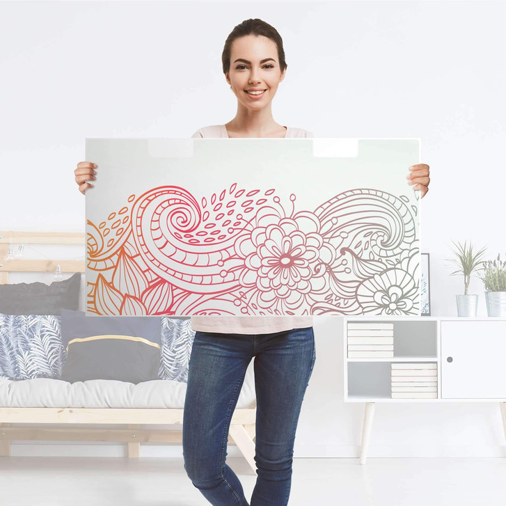 Unsere Möbelfolie Floral Doodle für die Stuva Banktruhe ist der Blickfang im Wohnzimmer. Unsere Dekofolien sind hochwertige, selbsthaftende Vinylfolien (seidenmatt) und können dank Bubble-free Technologie kinderleicht verklebt werden.