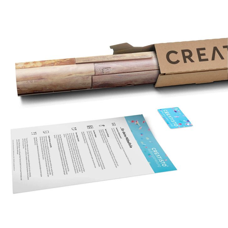 Das Trägerpapier von der Folie ca. 10-20 cm abziehen und am oberen Bereich des Objektes positionieren. Zieh jetzt das Trägerpapier Stück für Stück von der Motivfolie nach unten hin ab und streiche das Motiv vorsichtig an der Möbeloberfläche fest.