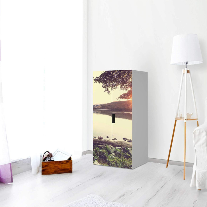 Unsere Möbelfolie Seaside Dreams für den Stuva Schrank - 2 grosse Türen ist der Blickfang im Wohnzimmer. Unsere Dekofolien sind hochwertige, selbsthaftende Vinylfolien (seidenmatt) und können dank Bubble-free Technologie kinderleicht verklebt werden.