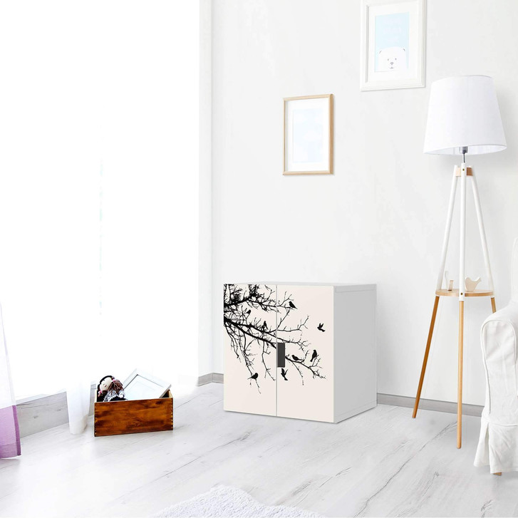 Möbelfolie IKEA Stuva / Malad Schrank - 2 kleine Türen - Tree and Birds 1