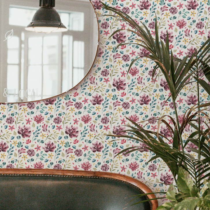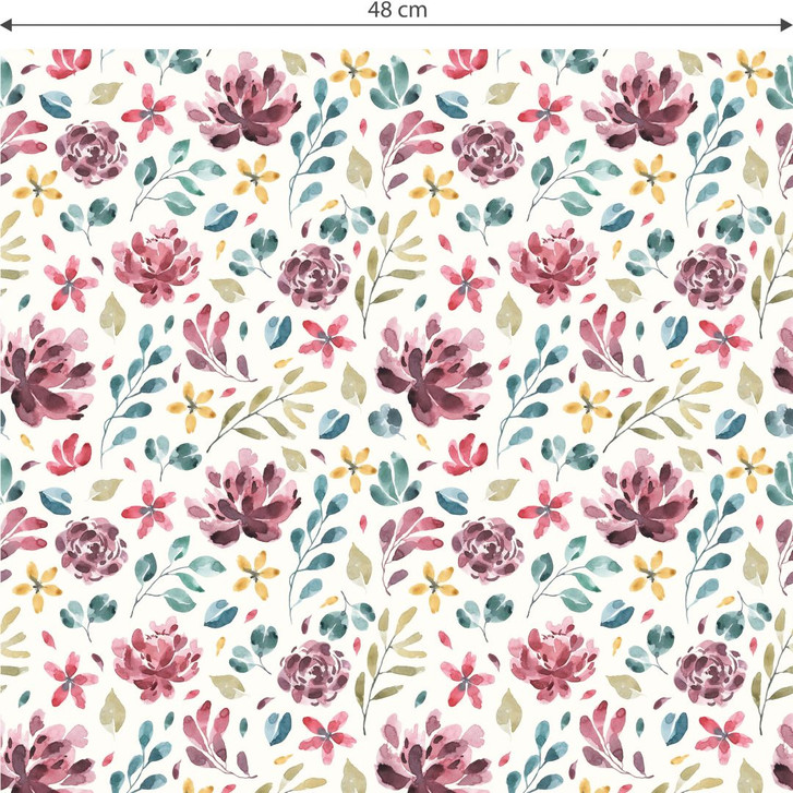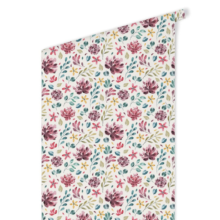Wunderschöne Blüten und Blätter in Aquarellfarben machen diese Tapete zu einem romantischen Begleiter von Einrichtungen im traditionellen Stil wie z.B. skandinavisch, Landhaus, französisch oder auch shabby chic. Holen Sie sich diese schöne Dekoidee nach Hause und lassen Sie Ihre Wände erblühen!