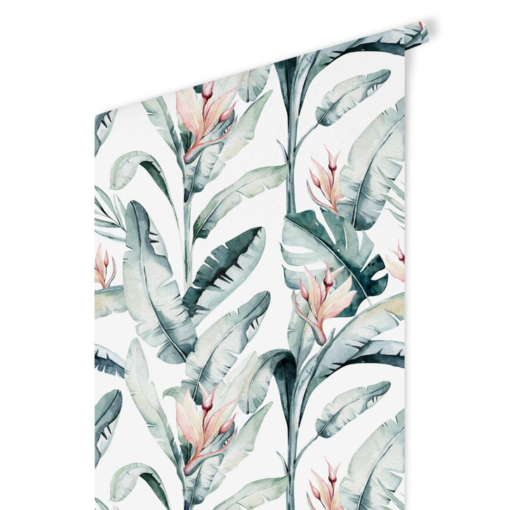 Mit dem farbenfrohen Tapetendesign entsteht tropisches Wohnflair in den Räumen