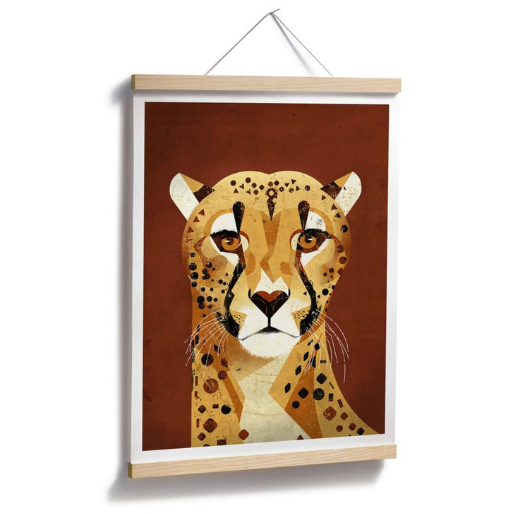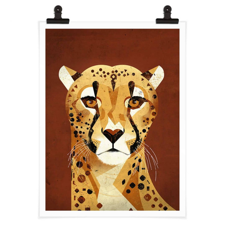 Für Kinder ist das eigene Zimmer ein Ort zum Spielen, Toben, aber auch ein Rückzugsort zum Ruhen und Entspannen. Diesen Platz individuell und abwechslungsreich zu gestalten ist daher besonders wichtig. Das Poster mit dem Motiv von Dieter Braun wird zum absoluten Eyecatcher an der Wand im Kinderzimmer. Es zeigt das Portrait eines Geparden. Die Raubkatze schaut interessiert in die Kamera.