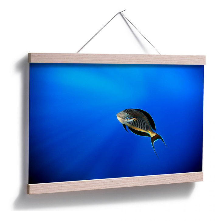 Das Bildmotiv zeigt einen wunderschönen Meeresfisch in einer blau-leuchtenden Unterwasser-Kulisse. Das Fotokunstwerk stammt vom Fotografen Alessandro Catta und ist in verschiedenen Grössen erhältlich.