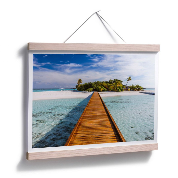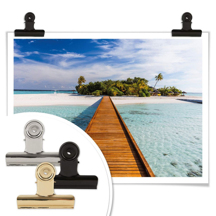 Das paradiesische Fotomotiv entführt Sie an einen entspannenden und erholsamen Ort mit weissem Sandstrand und glasklarem Wasser. Hier auf einer kleinen Insel können Sie Kraft tanken und Ihre Seele baumeln lassen. Der lange Holzsteg führt Sie zu Ihrem persönlichen Paradies - folgen Sie diesem Weg und gönnen Sie sich eine Auszeit!