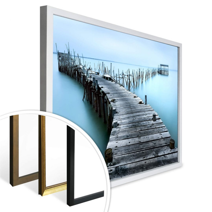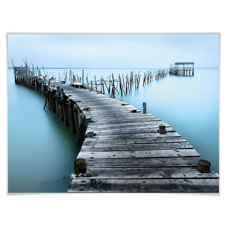 Ruhe und Stille - spüren Sie das auch? An einem Ort wie diesem kann man seinen Kopf frei machen; die Seele baumeln lassen. Dieser Platz wirkt sehr geheimnisvoll: ein alter, weiser Holzsteg, mitten im kalten Wasser und vollkommen verlassen. Und doch wurde er von dem Künstler García gefunden und stilvoll als Foto verewigt, mit dem Sie Ihre Räume geschmackvoll dekorieren können.