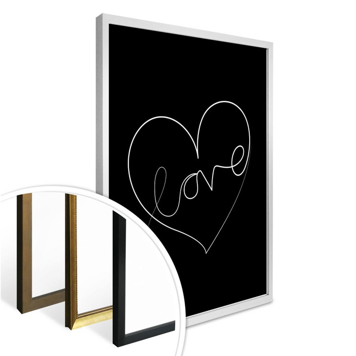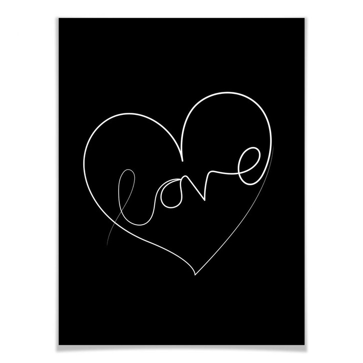 Mit Liebe verbinden wir viele positive Gedanken und Eigenschaften: Zuneigung, Harmonie, füreinander da sein, Glück und Leidenschaft. Das Herz mit dem Wort "Love" ist mit weissen Linien auf einem schwarzen Hintergrund dargestellt. Schlicht und simpel, dennoch aussagekräftig! Bringen Sie Ihr Lieblingswort an die Wand und dekorieren Sie im modernen, romantischen Stil!