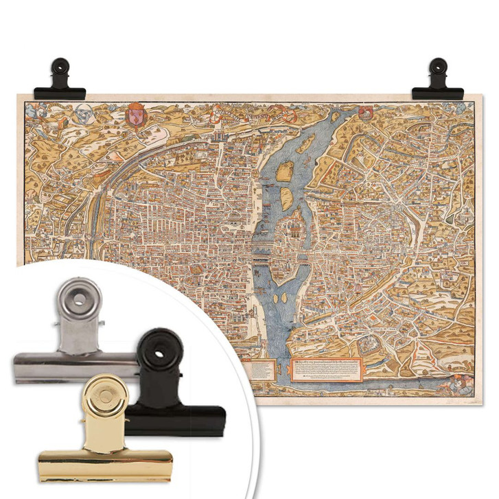 Das Wandbild mit der Abbildung der historischen Karte von Paris ist in verschiedenen Grössen erhältlich.