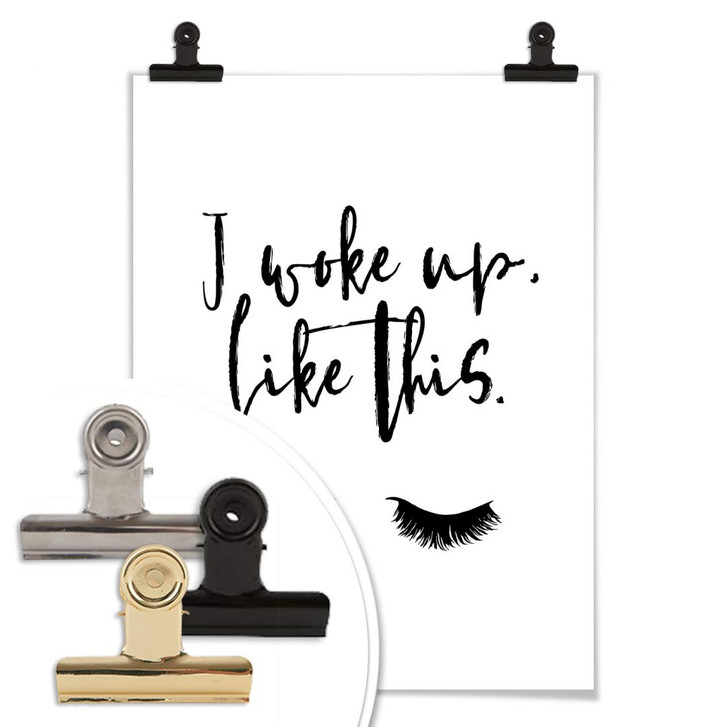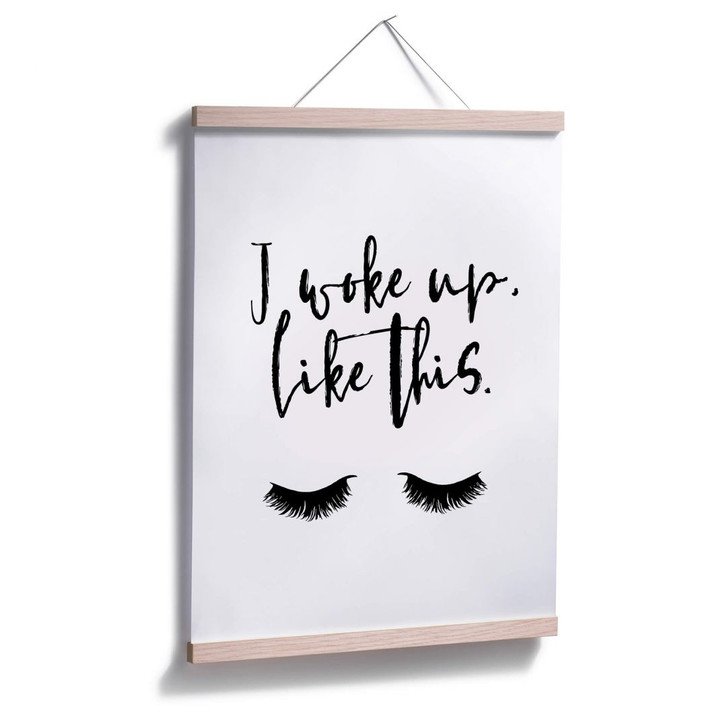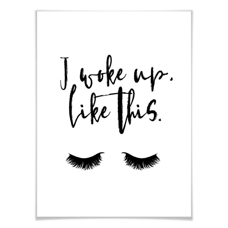 Dekorieren Sie Ihre Wand mit dem Typografie-Poster: "I woke up like this" mit den dichten Wimpern. Das weisse Poster ist in verschiedenen Grössen erhältlich. Die kreative Wandbefestigung können Sie gleich dazu bestellen.