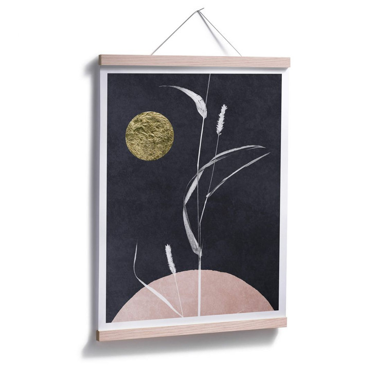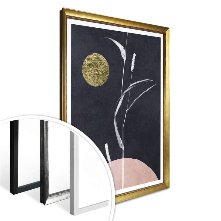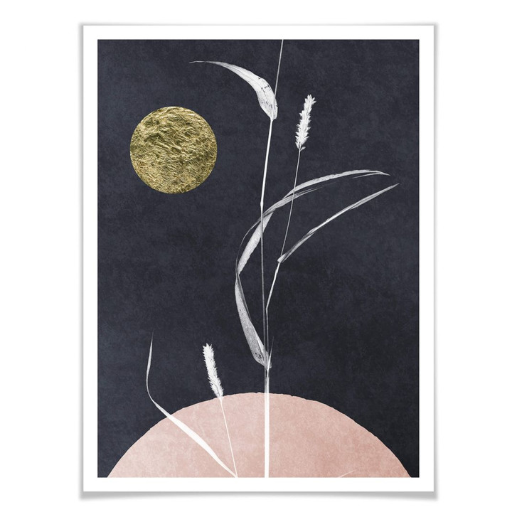 So faszinierend und geheimnisvoll wie unsere Mutter Natur ist, ist auch das abstrakte Motiv des Mondes und der Sonne schlicht, aber eindrucksvoll dargestellt. Eine weisse Getreidepflanze rundet das schwarz dominierende Bild mit einer Leichtigkeit ab. Dekorieren Sie stilvoll mit den Naturmotiven von Kubistika!