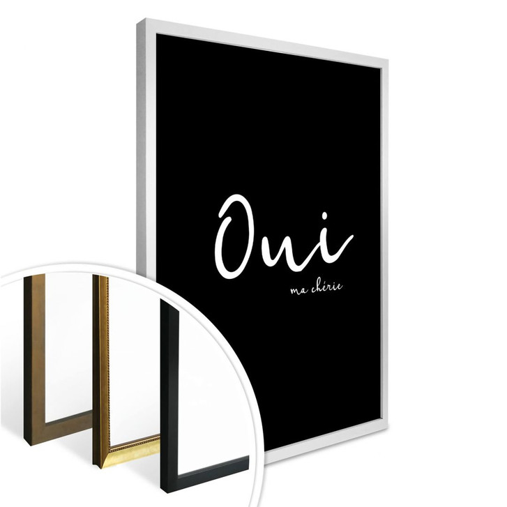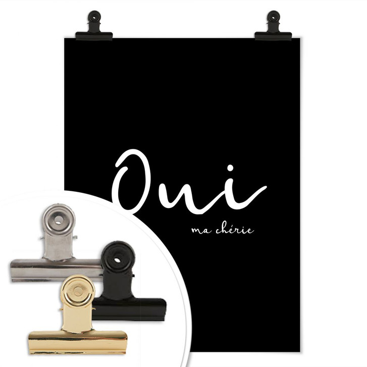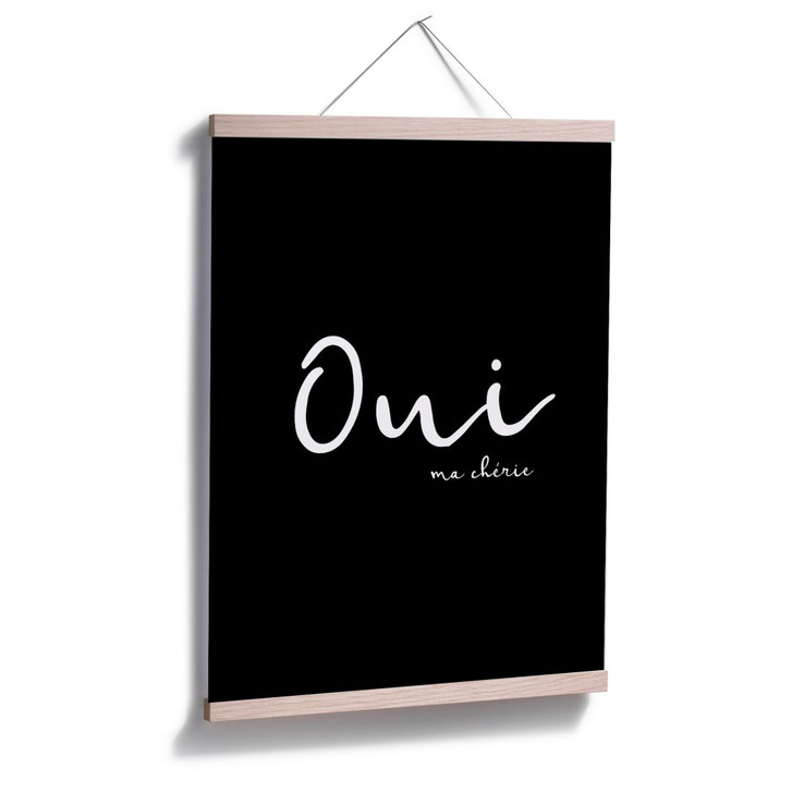 Das schwarze Poster mit der weissen Schrift "Oui ma chérie" ist ein Hingucker an der Wand. Das Poster mit dem französischen Spruch "Ja mein Liebling" ist in verschiedenen Grössen erhältlich. Die Wandbefestigung können Sie bei uns gleich mitbestellen!