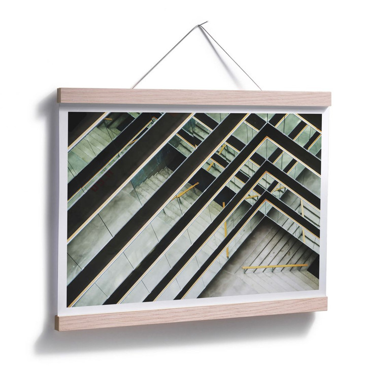 Der fotografische Blick von oben in ein verspiegeltes Treppenhaus setzt tolle Akzente - auf Wunsch können Sie passende Washi Tapes, Bilderrahmen oder Posterleisten zur Befestigung mitbestellen.