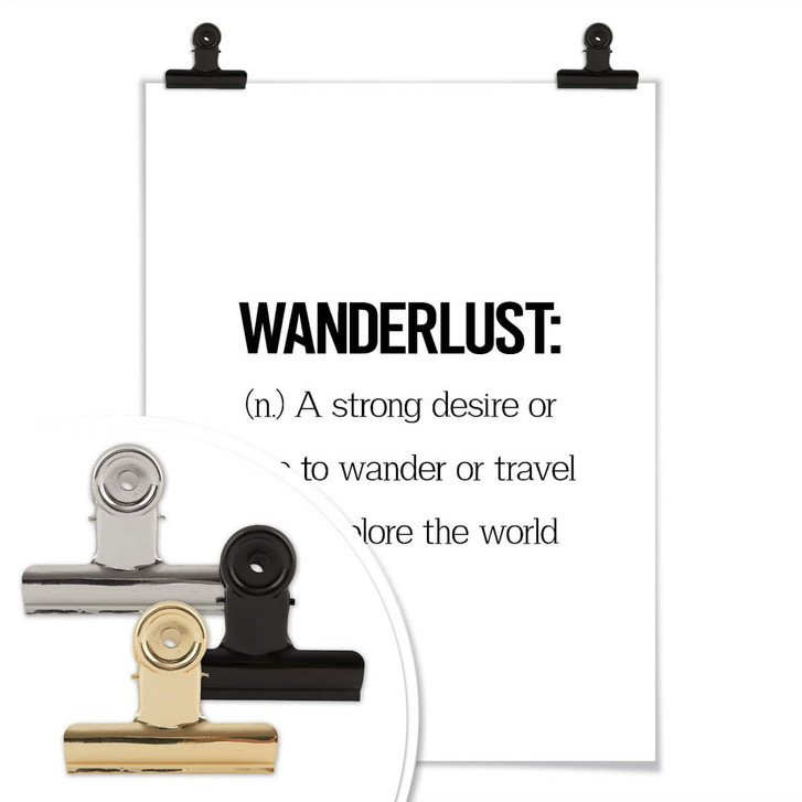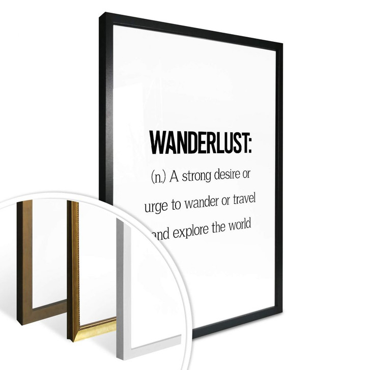 Für alle Weltenbummler - Dekorieren Sie Ihre Lieblingswand mit dem trendigen Sprüche-Poster! Hier wird das Wort Wanderlust, welches auf Deutsch mit Wanderlust oder Fernweh übersetzt werden kann, definiert.