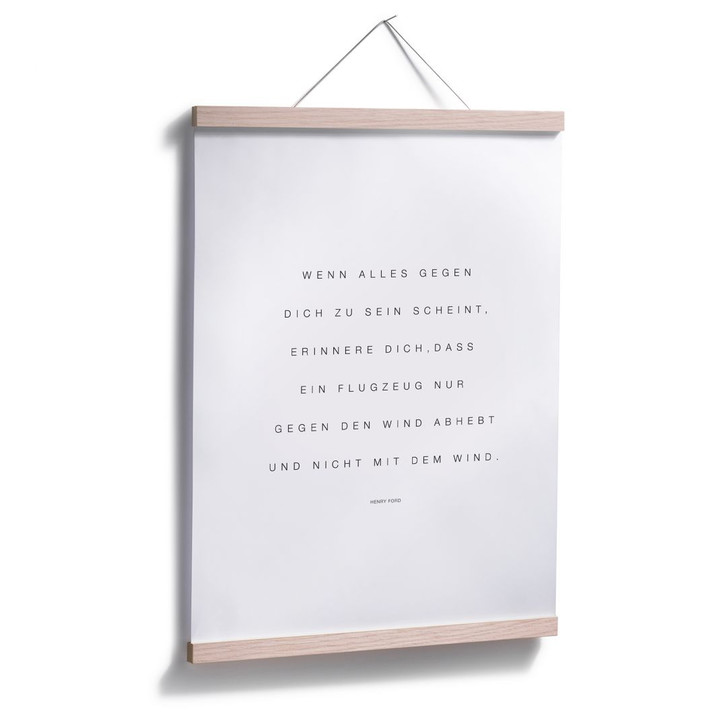 Das Typogarfie-Poster mit dem Spruch ""Wenn alle sgegen dich zu sein scheint, erinnere dich, dass ein Flugzeug nur gegen den Wind abhebt und nicht mit dem Wind."" ist in unterschiedlichen Grössen erhältlich.
