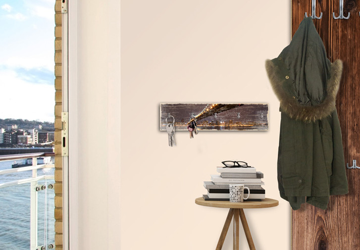 Holzschild mit einem wunderschönen Bild von New York. Für eine schnelle Wandmontage sind zwei angebrachte Zackenaufhänger inklusive. Die fünf Haken aus Edelstahl liegen dem Produkt bei. Für eine leichtere Anbringung haben wir die Löcher für Sie vorgebohrt.