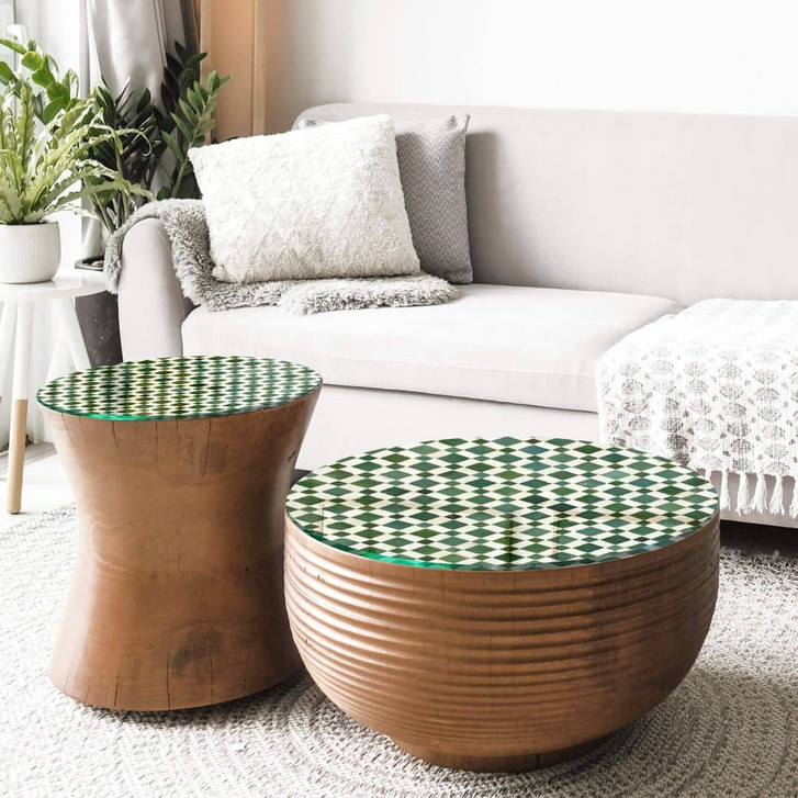 Stilvolle Tische dürfen in der Wohnung nicht fehlen, um den Räumen Gemütlichkeit zu verleihen. Kleine Couch-, Ess- und Gartentische sind oftmals der erste Blickfang beim Betreten des Raumes. Daher verdienen sie mehr Beachtung in puncto Design. Diese hochwertige Platte besteht aus 6mm starkem Sicherheitsglas, das mit seinem kratzfesten und robusten Material überzeugt. Setzen Sie mit diesem grünen Mosaikmuster farbige Akzente im Raum. Mit diesem runden Accessoire kann der Tisch modern aufgepeppt werden - so wird die Wohlfühlecke zu einem besonderen Eyecatcher. Die Oberfläche kann mit einem handelsüblichen Glasreiniger gesäubert werden.