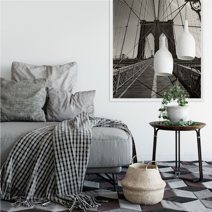 Wallprints sind selbstklebende Folien, die mit satten Farben und eleganter, seidenmatter Oberfläche begeistern. Die Anbringung ist einfach. Wallprints lassen sich abnehmen und wiederverwenden. Das Motiv mit dem Ausblick auf die New Yorker Brooklyn Bridge ist in verschiedenen Grössen erhältlich.
