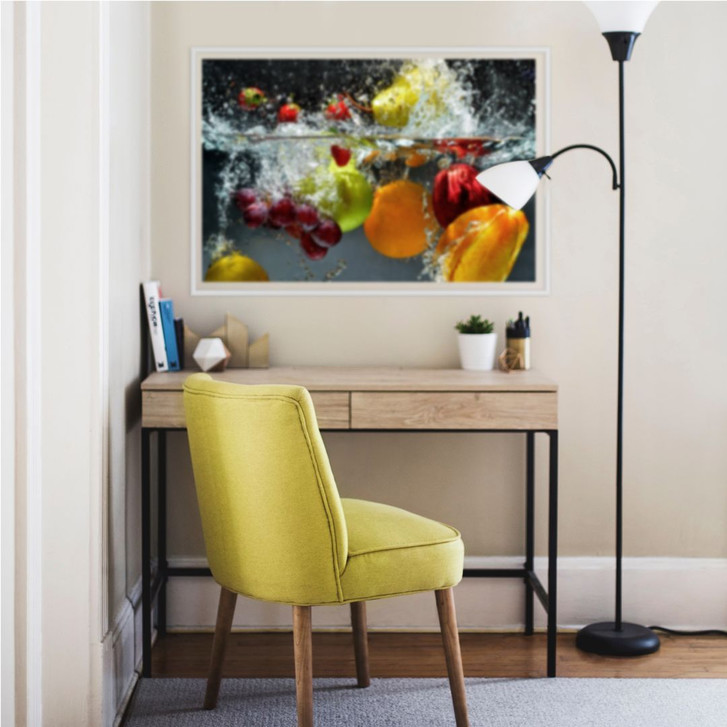 Eine erfrischende Abkühlung für Ihr Zuhause kommt mit diesem Bild an Ihre Wand. Die Kombination aus frischem Obst und Wasser bringen Abwechslung an Ihre Wand. Besonders gut macht sich dieses Wandbild in der Küche, aber auch im Essbereich, oder im Wohnzimmer, sorgt das Motiv für erfrischende Momente. Tauchen Sie ab und kühlen Sie sich von dem stressigen Alltag ab.