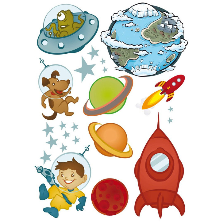 Das Mega Pack Weltraum besteht aus 23 farbigen Aufklebern.
