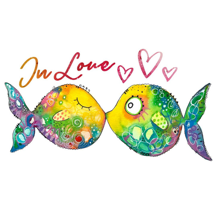 Clarissa Hagenmeyers Motiv "Verliebte Fische" als Wandtattoo für Ihre Lieblingswand. Diese tolle Illustration der Künstlerin bringt Gross und Klein zum Strahlen! Mit ihrer puren Lebensfreude, die sie auch gerne in ihren Kunst-Kursen zum Ausdruck bringt, lachen einem die witzigen frechen Tiere, Illustrationen & Zeichnungen direkt entgegen. Mit viel Humor und viel Farbe zeichnet Hagenmeyer ihre Illustrationen und schafft so ein wunderbares Highlight für Ihre Wand. Dies ist nicht nur für die Kleinen im Kinderzimmer ein riesen Spass!!!