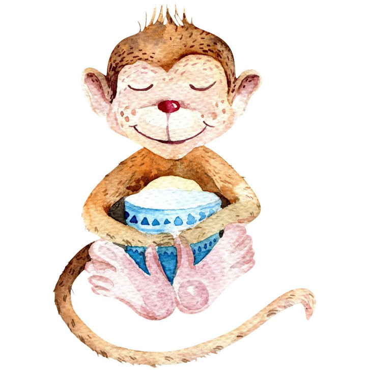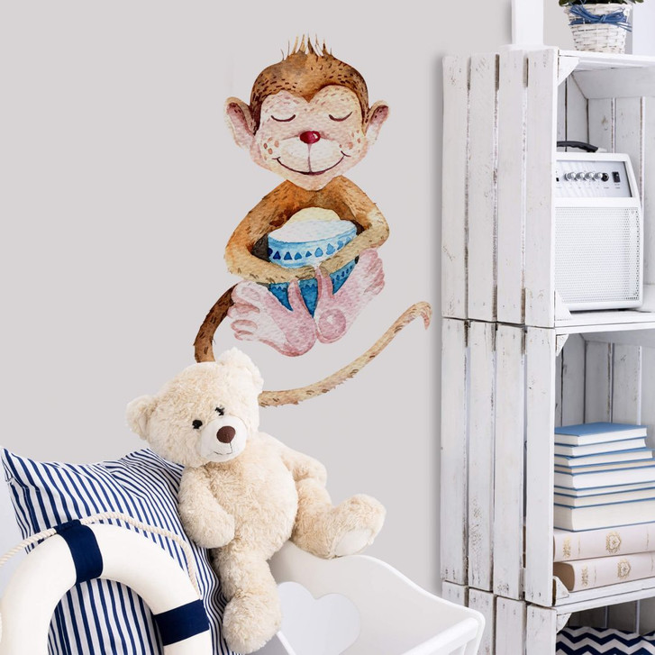 Nicht nur zum Schlafen: Kinder- und Jugendzimmer haben viele Funktionen, schliesslich wird in ihnen gespielt, gelernt und aufgewachsen. Daher ist hier unsere Deko genau auf diese Ansprüche abgestimmt. Diese Illustration der Künstlerin Kristina Kvilis setzt einen kreativen Blickfang an der Wand. Der kleine Affe schaut begeistert auf seine blaue Trommel.