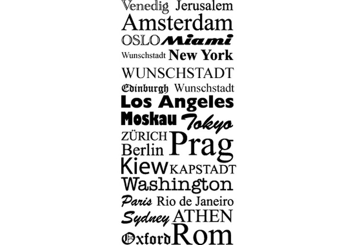 Ihre Heimat- oder Lieblingsstädte in einem individuellen Wandtattoo.