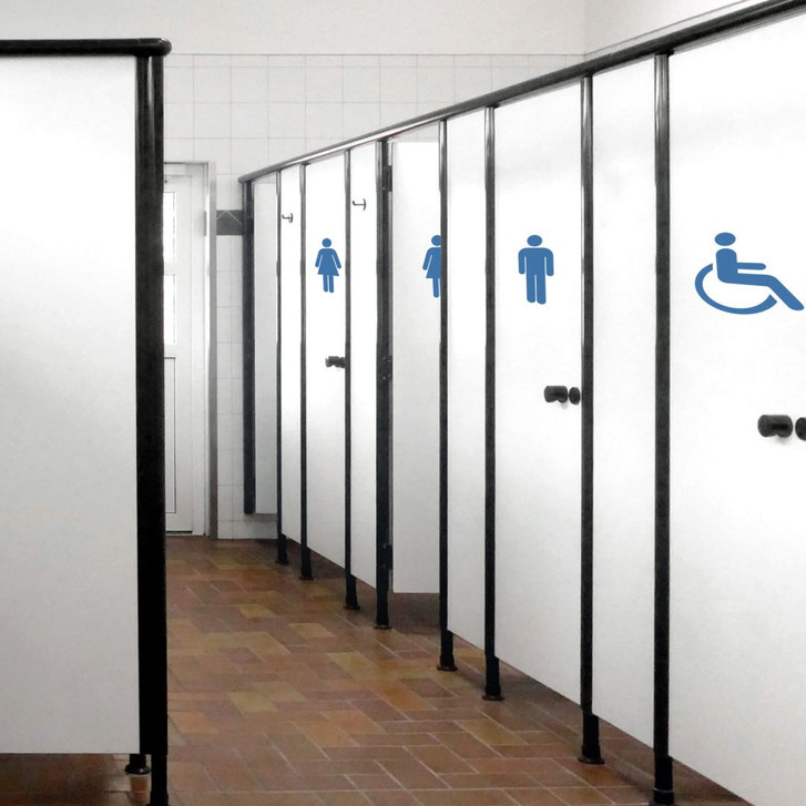 Markieren Sie die sanitären Bereiche für Frauen, Unisex, Männer oder den barrierefreien Bereich mit dem entsprechenden Symbol. Mit dem Unisex-Zeichen wird das Bad geschlechtergerecht gekennzeichnet. Ob im Büro, Restaurant oder im eigenen Zuhause: Die Toilettenmännchen weisen elegant zum stillen Örtchen hin. Mit wenigen Handgriffen können Sie Ihren Mitarbeitern oder Gästen einen unkomplizierten Gang zur Toilette ermöglichen.