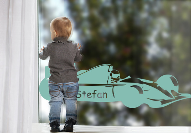 Glasdekor Wunschtext Rennfahrer