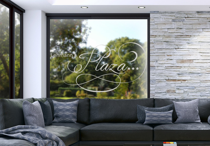 Glasdekor Wunschtext Plaza