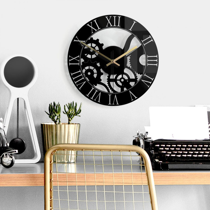 Wanduhr aus Glas - Zahnrad Ø30cm