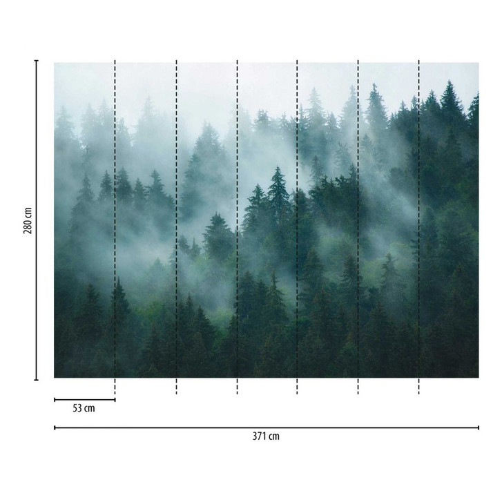 3D-Fototapete Wald Grün - Vliestapete mit Nebelmotiv für Wohnzimmer & Schlafzimmer