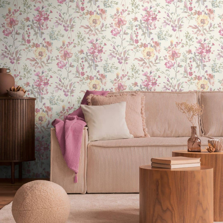 COSMOPOLITAN Blumentapete Weiss Rosa - florale Vliestapete Aquarell Wohnzimmer
