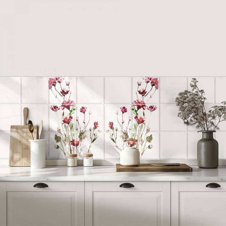 Fliesenkleistern leicht gemacht – diese Fliesenaufkleber im floralen Design für Nassbereiche sind ein Hingucker! Der romantische, blumige Stil peppt jede Wand sofort auf und zaubert ein stilvolles Ambiente beim Kochen oder Entspannen in der Badewanne. Setze Akzente mit unseren praktischen Aufklebern!