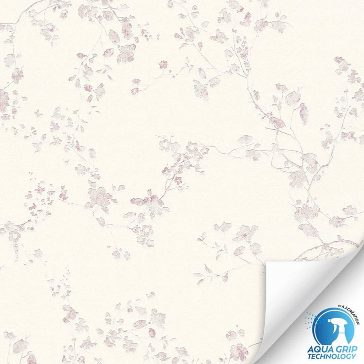 WOW - DESIGNDROP - Zarte Blüten und Zweige in Rosa auf cremefarbenem Grund – mit Wasser besprühen, anbringen – WOW!